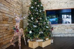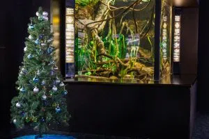 Holidays Under the Peaks is a month-long celebration that kicks off on November 28th. Guests can marvel at the aquarium’s iconic peaks glowing in candy-cane red and white, enjoy seasonal programs, and even catch Santa himself scuba-diving with river giants on weekends.