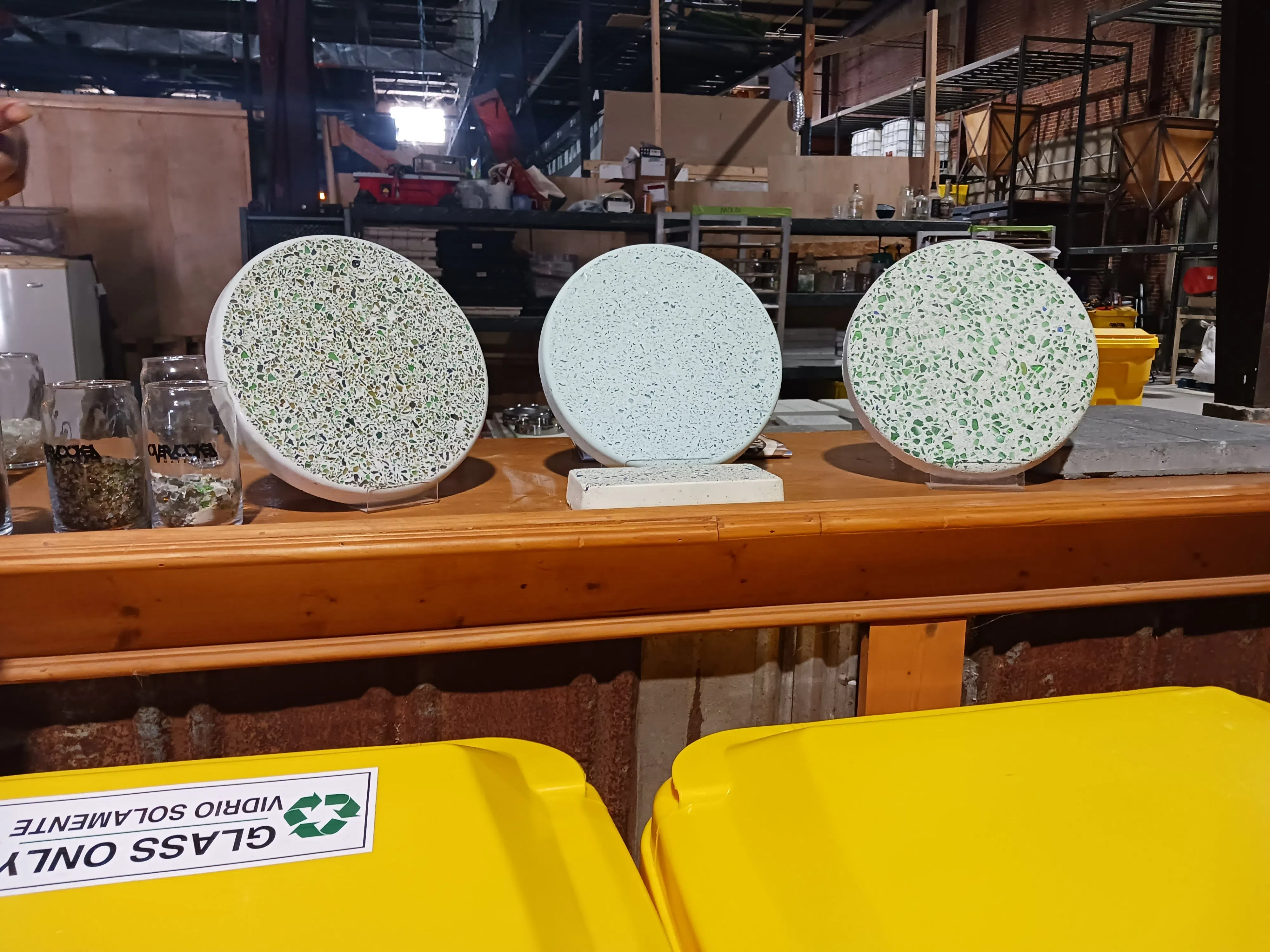Holl showed us landscaping pavers they made at the facility, flooring tiles that looked like Terrazzo flooring and even cup coasters. He said landscapers use processed glass as gravel and mulch for decorative yards and gardens. Holl said processed glass is safe because the glass is no longer sharp. Some processed glass is ground down to fine sand particles.